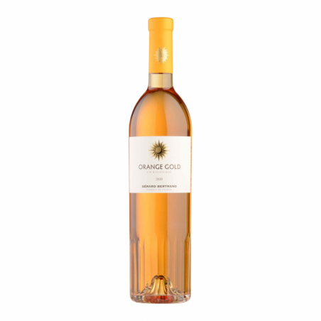 Gérard Bertand est aujourd'hui une référence des vins du Languedoc et particulièrement pour son engagement envers une viticulture engagée. Gerard Bertrand est aujourd'hui leader mondial des vins biologiques. Gerard Bertrand est issu d'une famille de vigneron originaire de Corbière. Il reprend le vignoble familial en 1987 suite au décès accidentel de son père. Au fil des années, Gerard Bertrand agrandi son vignoble et rachète de nombreux domaine du Languedoc (Cigalus, Château Laville Bertrou, Château l'Hospitalet, l'Aigle, Château La Sauvageonne, Château La soujeole, Clos d'Ora, Clos du Temple, Château les Karantes, Château Aigues-Vives, Cap Insula, Château des 2 Rocs, Château de Tarailhan et domaine de l'Estagnère). La cuvée Orange Gold est un hommage aux vins oranges de Georgie élaborés il y a 4500 ans. La vinification d'Orange Gold est une technique ancestrale. Les raisins blancs sont vinifiés et fermentés comme pour les vins rouges en grappes entières. C'est la macération avec les rafles et les peaux qui va apporter cette couleur orange. Orange Gold est un vin orange issu d'un assemblage de Chardonnay, Grenache Blanc, Viognier, Marsanne, Mauzac et Muscat. Comme la majeure partie des vins de Gerard Bertrand, le vin orange Orange Gold est certifié agriculture biologique.
